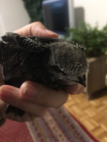 07.07.2018: der kleine Sammy ist immer noch in einem eher etwas grantigen Zustand. Er möchte ab und zu aus der Hand fressen, überlegt es sich dann aber doch anders und spuckt. Beim Zwangsfüttern klemmt er ziemlich den Schnabel zusammen... Aber ja, alles ist machbar und er wird es wohl auch noch lernen. Manche brauchen einfach mehr Zeit, sich an die menschliche Fütterung zu gewöhnen.