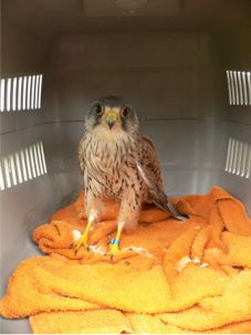 Es war ein adulter Terzel. Also, ein ausgewachsenes Männchen. Ich untersuchte ihn, fand aber keine Verletzungen, er wirkte nur etwas benommen, der Blick war aber klar. Da er neben der Strasse gefunden wurde, ging ich von einer Kollision mit einem Auto aus. Da ich einen strengen Terminplan hatte, beschloss ich, ihn zu mir nach Hause in die grosse Voliere zu nehmen, auf Möhlin (damals war ich noch Leiterin der Storchen- und Pflegestation Möhlin) schaffte ich es nun definitiv nicht. Dort angekommen setzte ich ihn ab und legte ihm eine Maus in den Käfig.