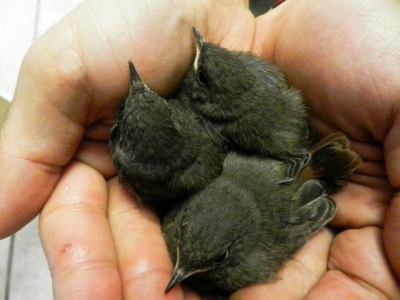 31.07.14: 5 junge Hausrotschwänze wurden abgegeben. Sie wurden schon länger nicht mehr gefüttert und sind in einem recht schlechten Zustand, konnten von mir dann aber zum Betteln überredet werden und sie haben nun auch alle gut gegessen.