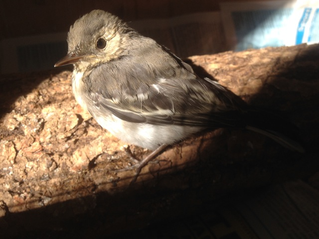 25.05.2014: eine Bachstelze wurde bei mir abgegeben. Ein fast erwachsenes Tier, hatte wohl einen Autounfall und ist etwas schief. Solche Patienten habe ich nach Unfällen immer wieder, die Chancen sind sehr unterschiedlich.