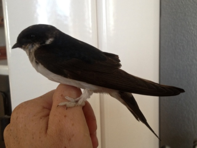 1 Mehlschwalbe, sie ist munter, etwas dünn, will aber nicht fliegen.
