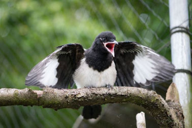 Update 20.07.2014: die Elster wurde ausgewildert, hat sich in der Volierenanlage gut etabliert und ich sah sie noch einige Male. Nun ist sie aber seit Tagen verschwunden. Sie wird ihren Weg hoffentlich gegangen sein.