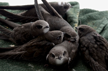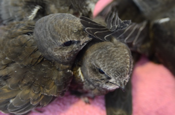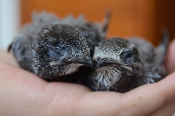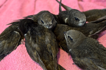 17.06.2015: der erste Mauersegler ist eingetroffen. Ein kleines, flauschiges Dino-Baby. Nach kurzer Unsicherheit und Scheu, singt er nun bereits vor sich her und frisst wunderbar. Das Tier heisst inzwischen "Lotte" und ist die Fressmaschine hoch 10... :-)